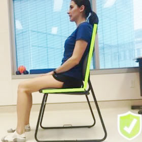 Si possible, insérer un support lombaire ou simplement votre chandail que vous roulez et placer au niveau du bassin, pour vous assurer d’être bien droit, les fesses dans le fond de la chaise et le dos en appui au dossier.